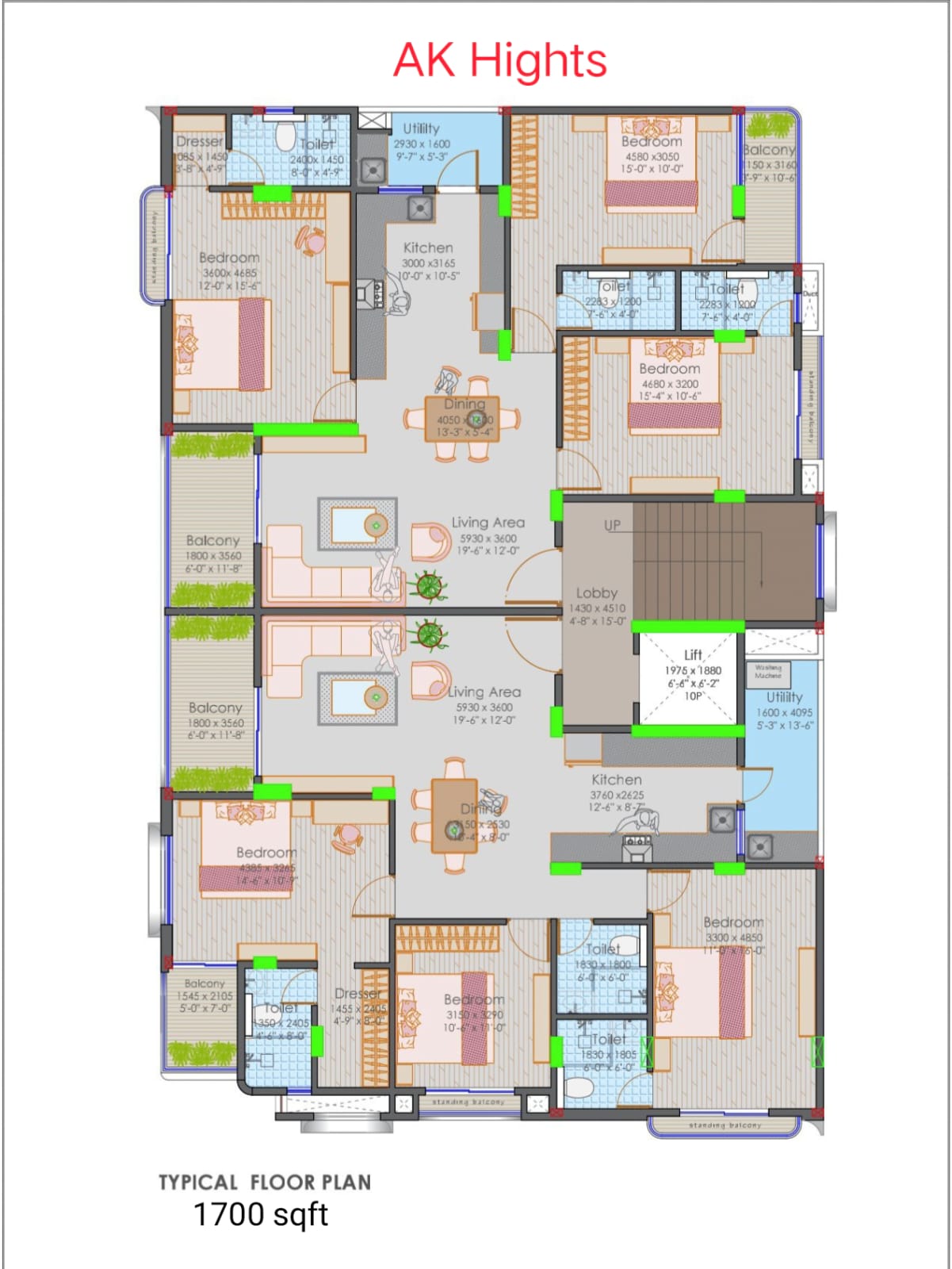 ✅ 1700+ Sq Ft Super Built-up Area