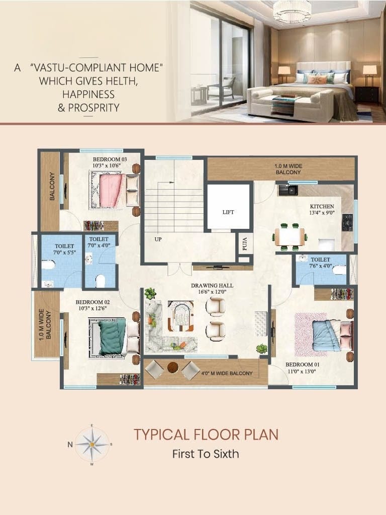 3Bhk :- 1600 sq.ft. SBA