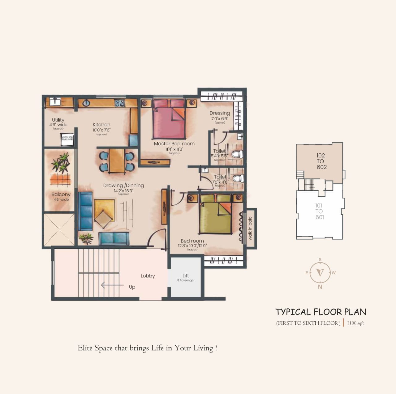 2 BHK :- 1100 Sq Ft Super Build-Up